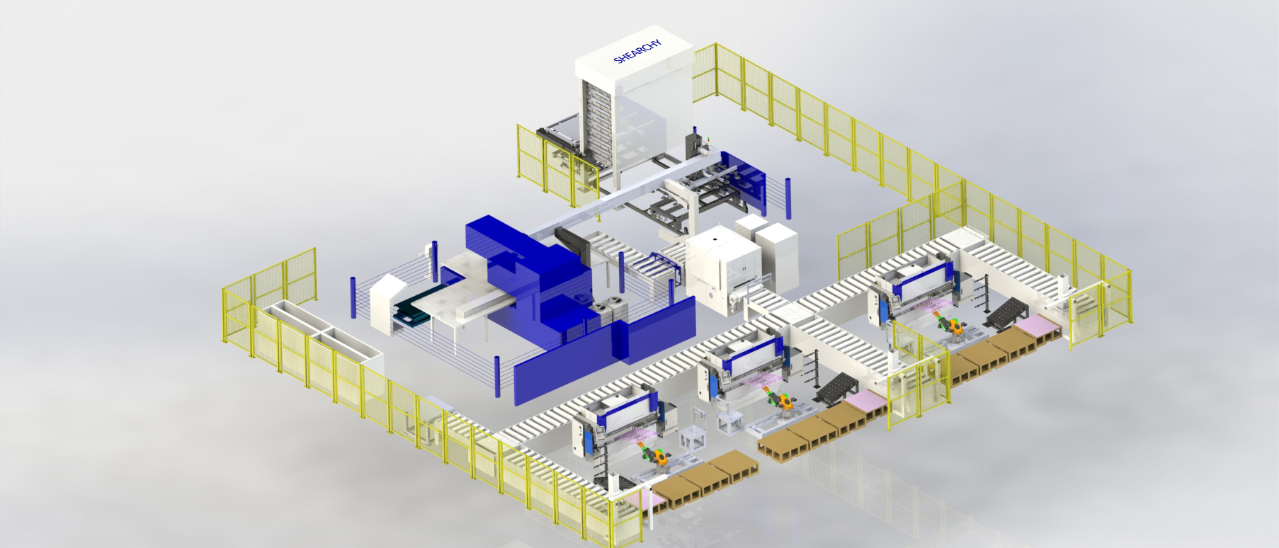 而中間核心的鈑金成形設(shè)備,仍然以數(shù)控折彎?rùn)C(jī)為主,配上機(jī)器人,雖然可以一定程度的減少人工投入和勞動(dòng)強(qiáng)度,但新工件示教、折彎模具的靈活高效的變換等,依然需要人工干預(yù),沒(méi)有較為成熟可靠的方案。尤其對(duì)于多品種、定制化、高精度的生產(chǎn)要求,依然讓智能工廠的落成不那么盡如人意。而四邊折邊單元的應(yīng)運(yùn)而生,通過(guò)其單側(cè)折彎、自動(dòng)換模、翻轉(zhuǎn)換邊、分區(qū)取料等高科技技術(shù),成功打破了壁壘,助力鈑金智能工廠互聯(lián)互通、柔性綠色、全線無(wú)人化的高效安全的生產(chǎn)。