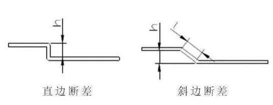 Z折又稱為斷差,根據(jù)成形角度分為直邊斷差和斜邊斷差,加工方式則依照斷差高度而定, 直邊斷差當(dāng)斷差高度h小于3。5倍料厚時(shí)采用斷差?;蛞啄3尚?大于3。5倍料厚時(shí)采用正常一正一反兩折完成。 斜邊斷差當(dāng)斜邊長(zhǎng)度l小于3。5倍料厚時(shí)采用斷差?;蛞啄3尚未笥?。5倍料厚時(shí)采用正常一正一反兩折完成