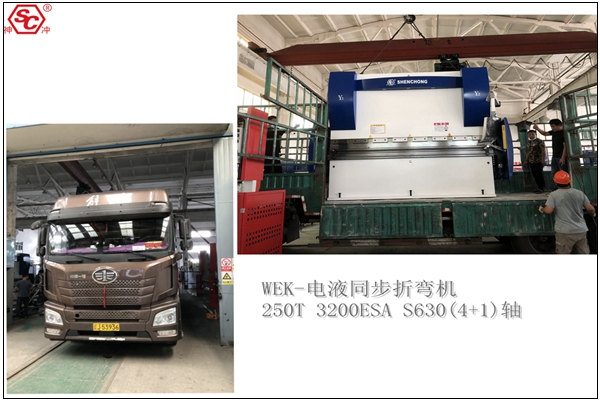 2022年9月27日發(fā)到內(nèi)蒙呼倫貝爾市一臺電液同步數(shù)控折彎機(jī)WEK-250T3200 ESA S630(4+1)軸