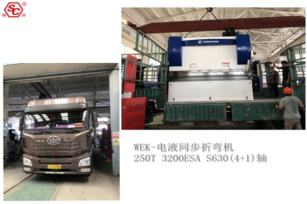 發(fā)到內(nèi)蒙古呼倫貝爾某機(jī)械設(shè)備廠一臺(tái)電液同步數(shù)控折彎?rùn)C(jī)WEK-250T3200ESA S630(4+1)軸