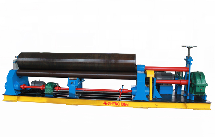 卷板機(jī)上輥在兩下輥中央對稱位置通過液壓缸內(nèi)的液壓? 油作用于活塞作垂直升降運(yùn)動通過主減速機(jī)的末級齒輪帶