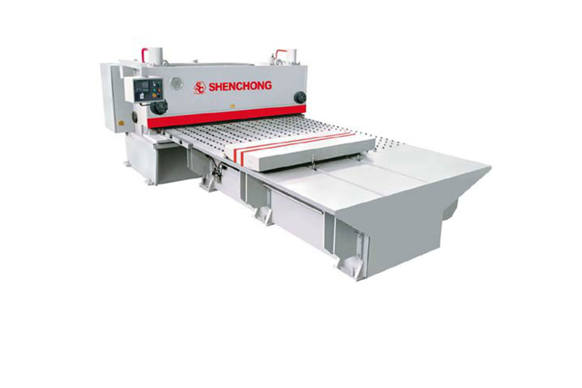 前送料采用進口精密滾珠絲杠傳動,直線導軌導向,數(shù)字式交流伺服電機驅(qū)動。定位準確,運行快速平穩(wěn),前送料臺面由鋼球、毛刷相間排布。